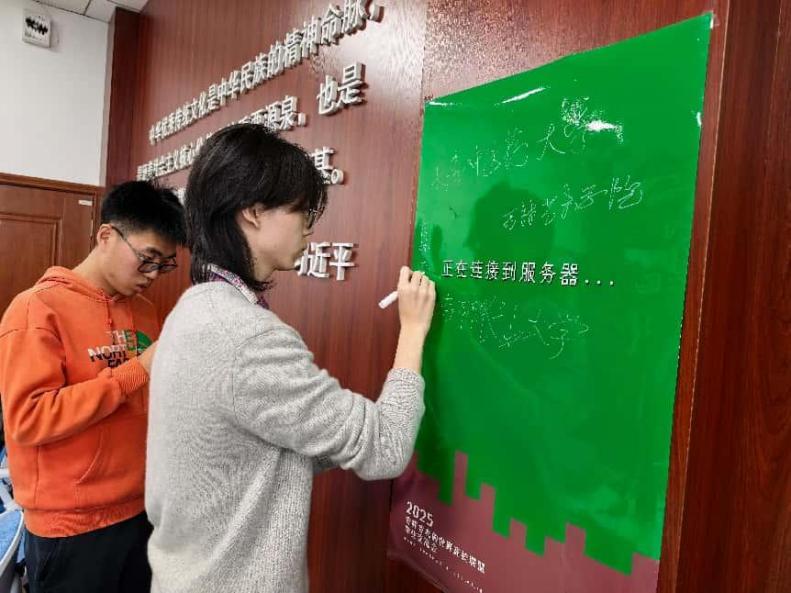 随后,参会人员移步至青年马克思主义者培养学院文化沙龙活动室,开启趣味十足的学生互动环节。通过各校像素世界复原成果展示、轻松的破冰游戏及激烈的现场游戏对抗,同学们快速增进了解,进一步凝聚社群认同。活动中,大家或欣赏像素美景,或专注游戏对抗,或为队友加油助威,校际隔阂彻底打破;不少同学还拿出本校特色“物料”交换,现场其乐融融。16:00,互动游戏环节在大家的意犹未尽中落下帷幕。